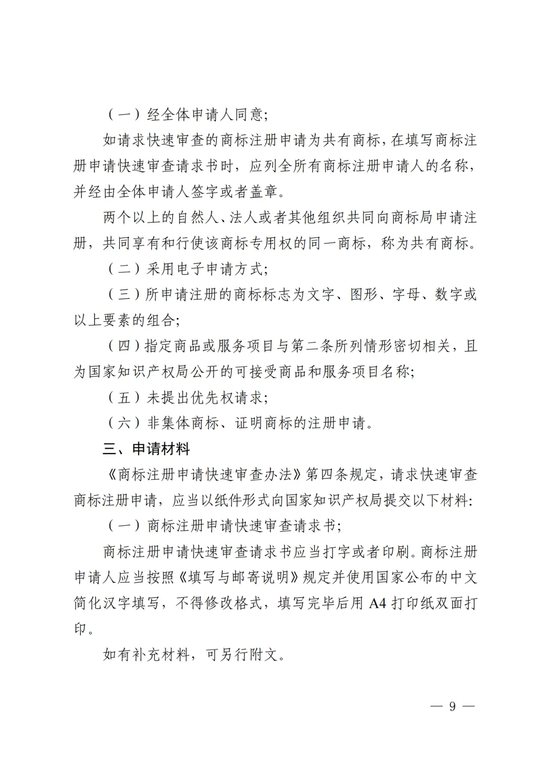 第九条 国家知识产权局处理商标注册申请快速审查应当严格依法履职、秉公用权,接受纪检监察部门监督,确保快速审查工作在监督下规范透明运行。