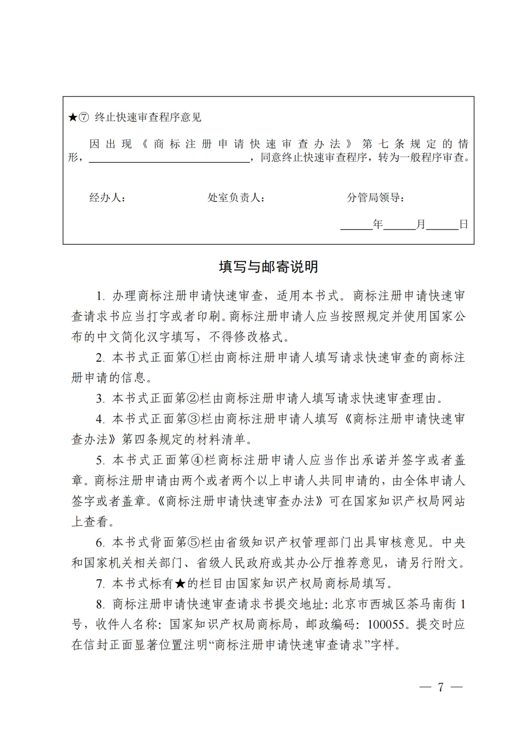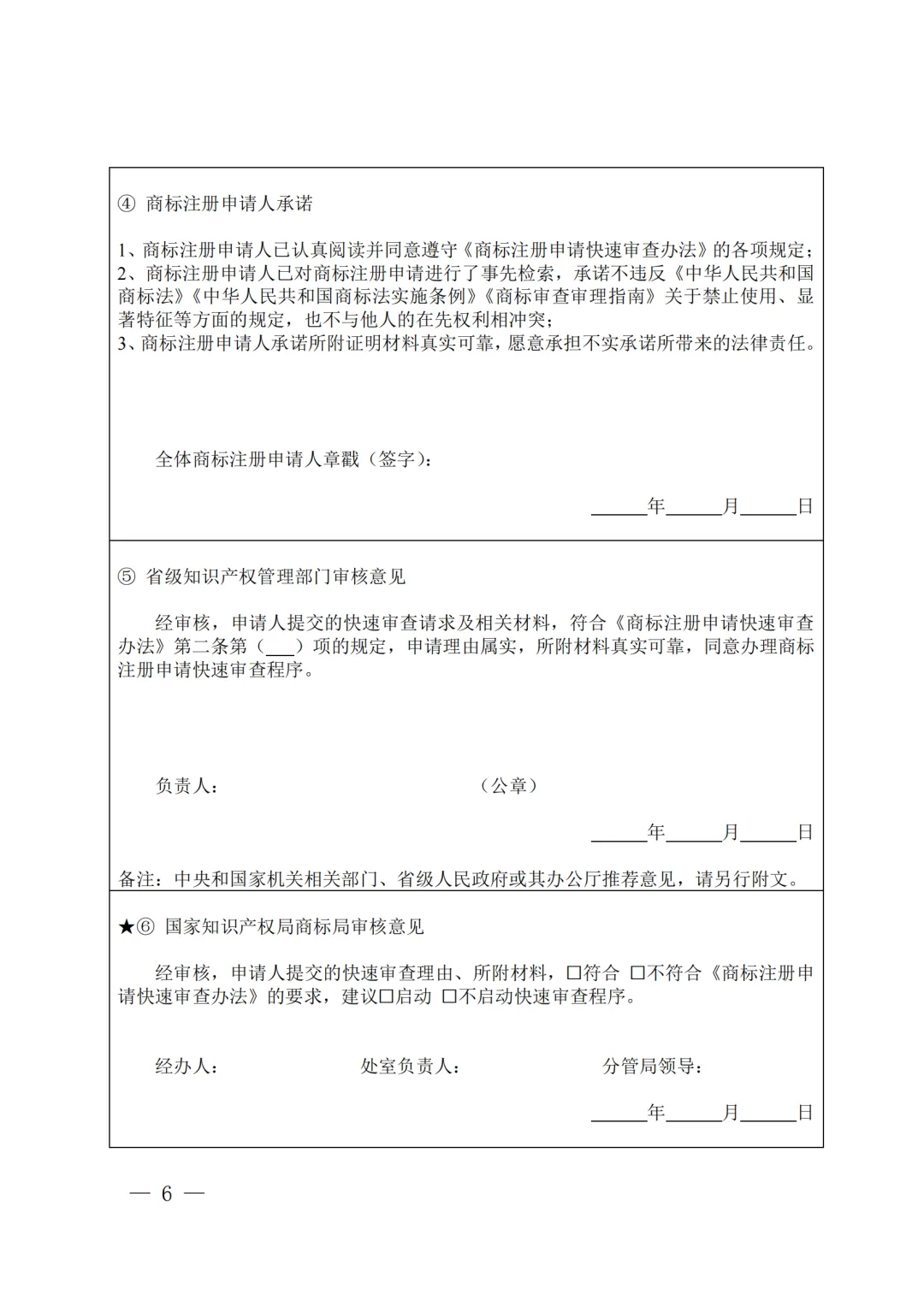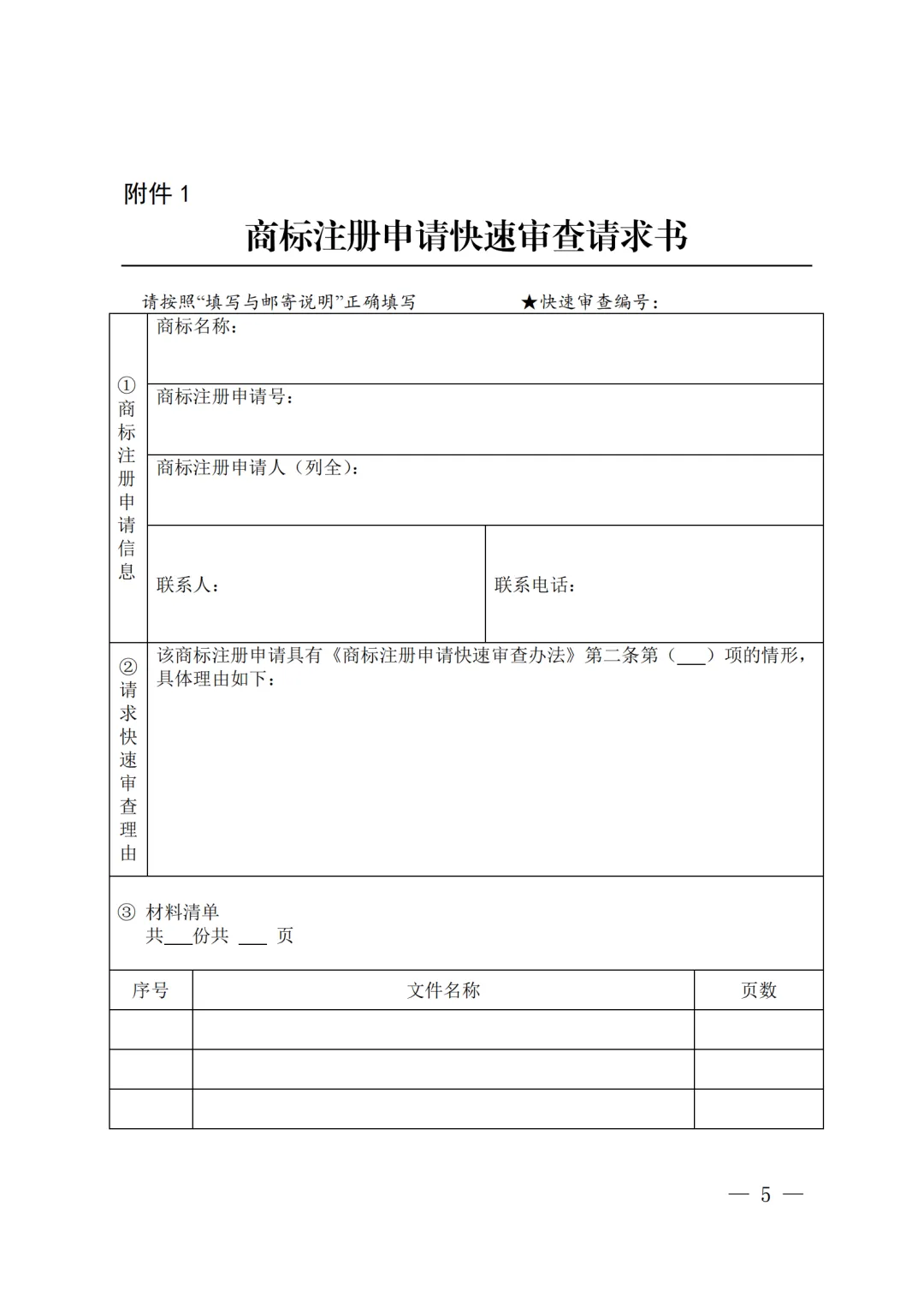 第四条 请求快速审查商标注册申请,应当以纸件形式向国家知识产权局提交以下材料: